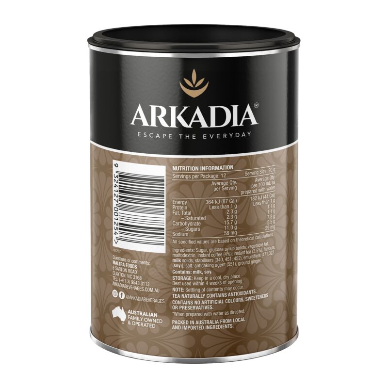 Dale a tu mañana un impulso intenso y sabroso con Arkadia Chai Dirty, donde las ricas notas tostadas del espresso se fusionan con las cálidas y aromáticas especias del chai tradicional. Esta mezcla de chai latte, inspirada en una cafetería, ofrece el equilibrio perfecto entre una cremosidad placentera y un café intenso, convirtiéndola en la bebida ideal para los amantes del chai y del café. Elaborada con nuestra exclusiva mezcla de especias chai, cada sorbo ofrece toques de canela, cardamomo y jengibre, que complementan a la perfección los profundos matices del espresso.